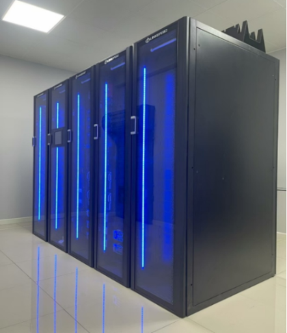 本项目采用兰贝A1系列一体化智能数据中心五联柜的解决方案,主要产品由综合柜、并联柜、配电单元、机架式UPS、机架式精密空调、动环监控、机架式消防插框、铅酸电池等组成。